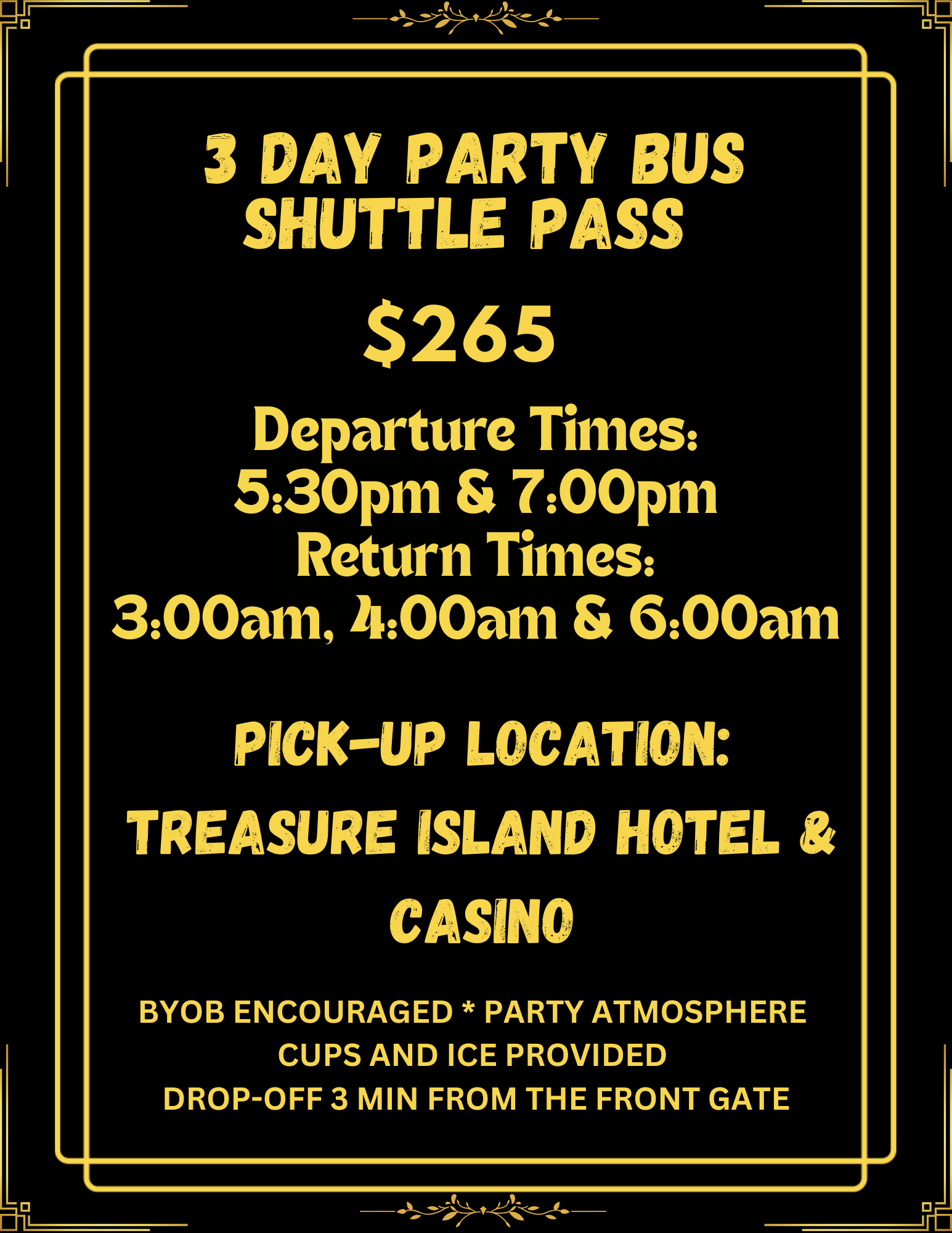 Full 3 Day Opening Ceremony Single Day & 2 Day Party Bus Shuttle Passes Available